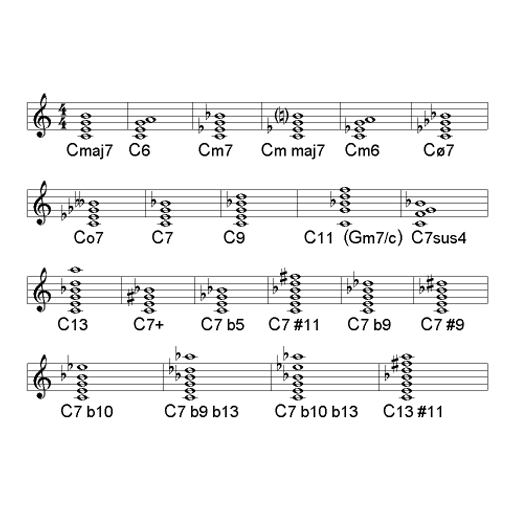 En la imagen, una tabla de acordes de jazz.